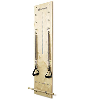 • Equipped with roll-down bar, 2 roll-down/regular arm springs with spring clips, 2 leg springs, 2 foam grip handles and 2 padded foot straps • Includes with Pilates Off the Wall DVD with 37 exercises • Made from top-quality, Baltic Birch plywood to ensure strength and durability • 10 eyehook positions offer maximum adjustability for height and exercise variety • Roll-down bar provides a wide range of exercise variations and support • WxHxD: 22 x 72 x 4.4 in (55.8 x 182.9 x 11.2 cm) • Weight: 35 lbs. (15.9 kg)