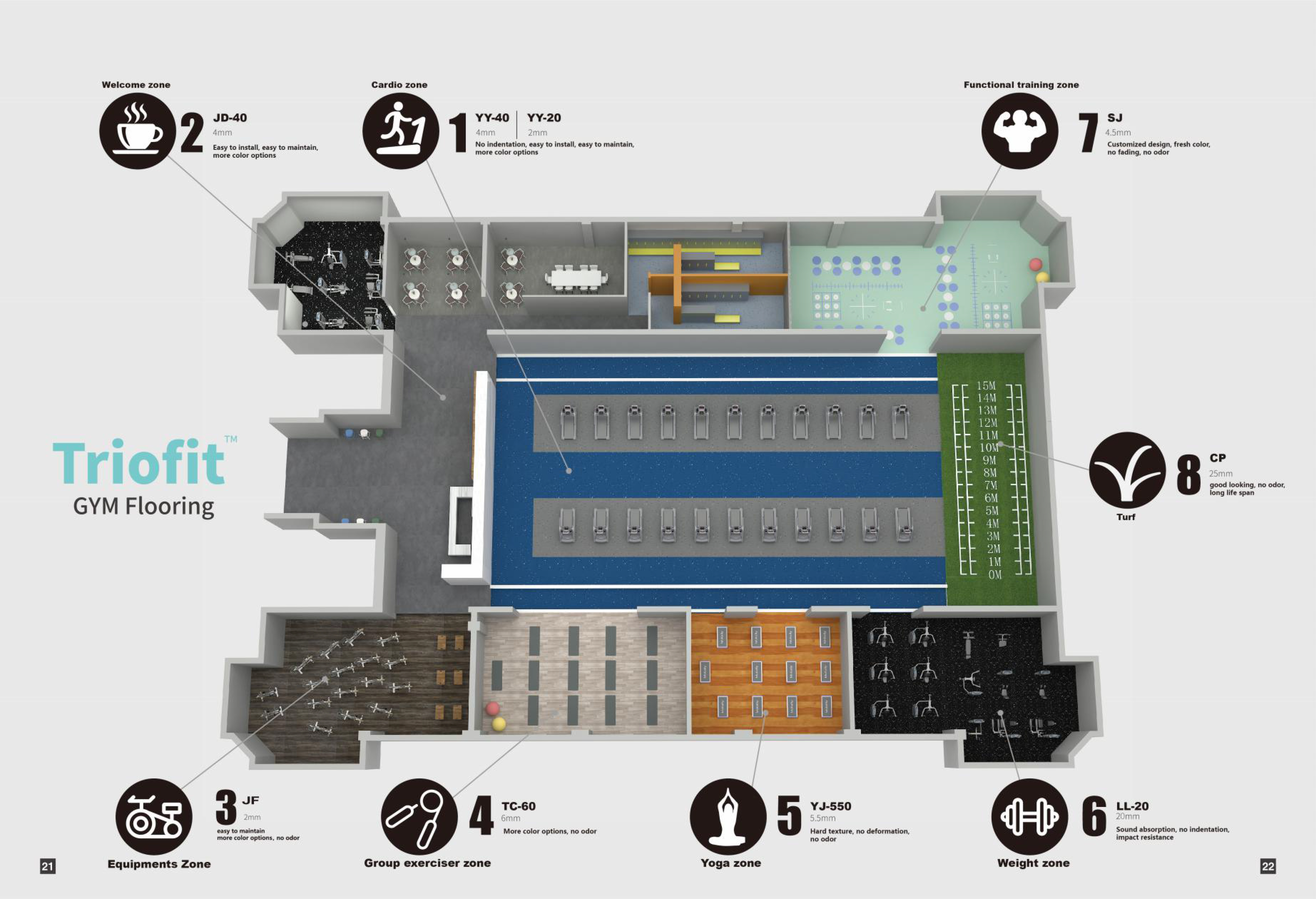 - Trioflex floorion reduces the immediate injury to all users when falling, diving or sliding on the floor.